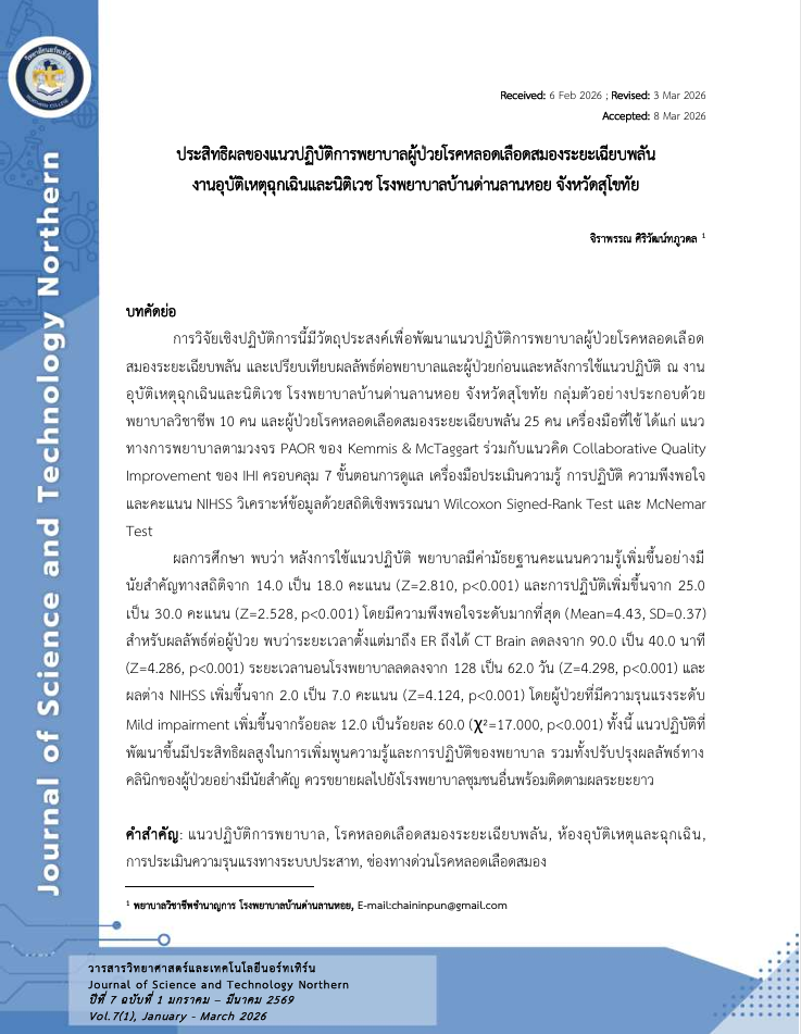 กองบรรณาธิการวารสาร ฝ่ายวิจัยและบริการวิชาการ วิทยาลัยนอร์ทเทิร์น